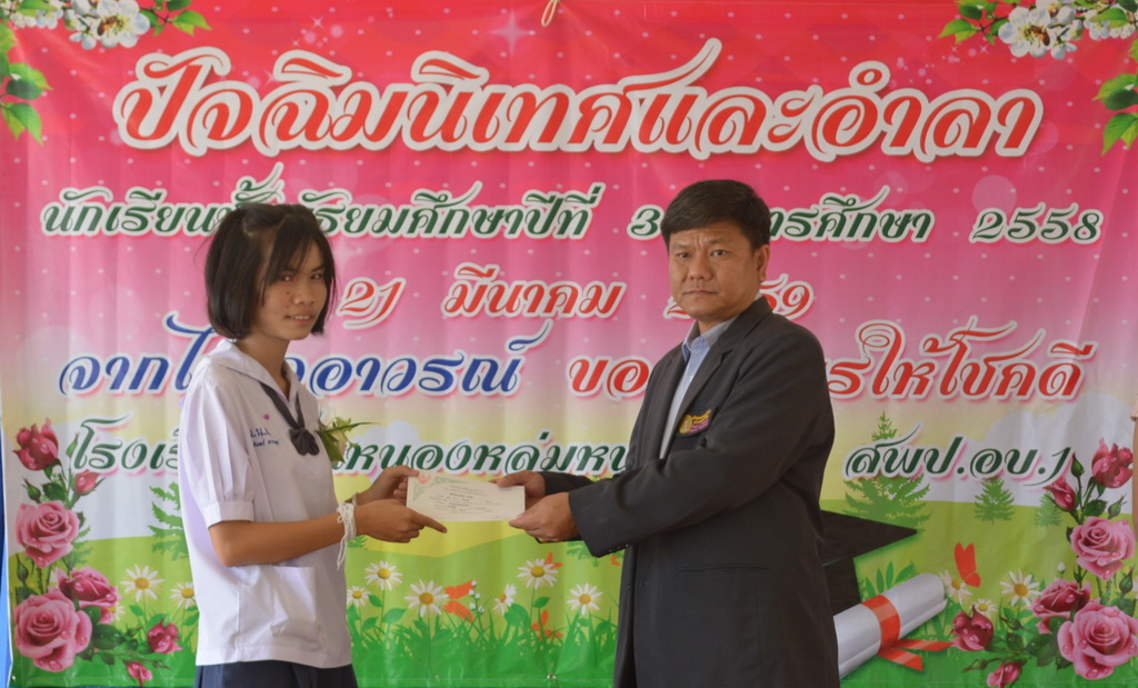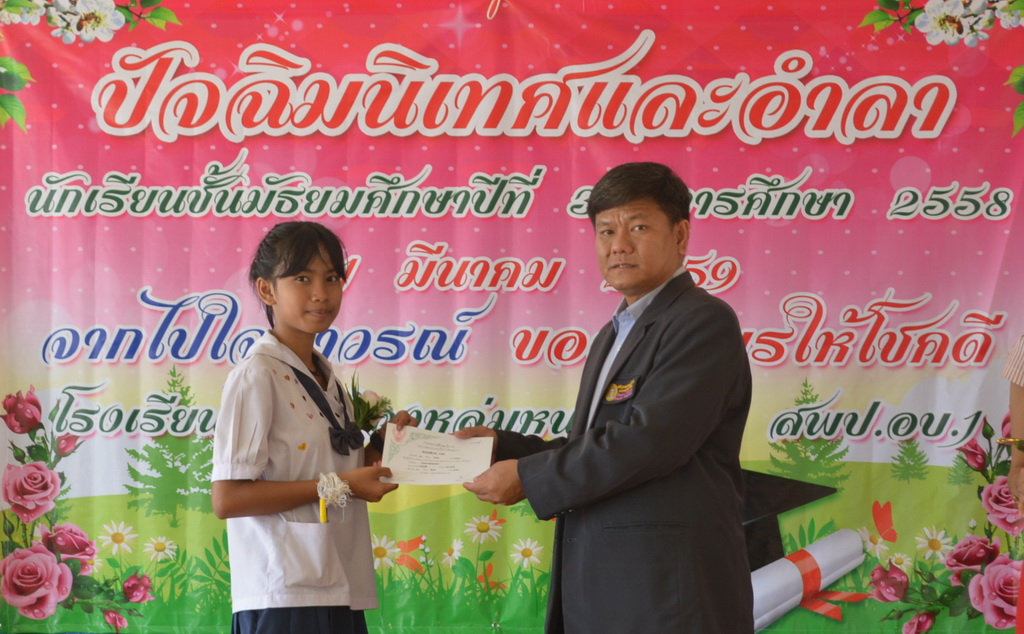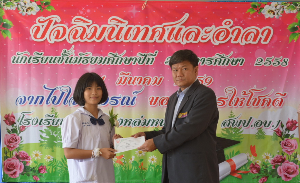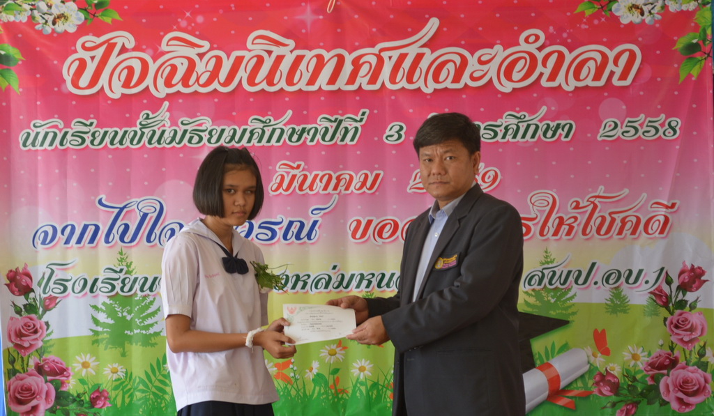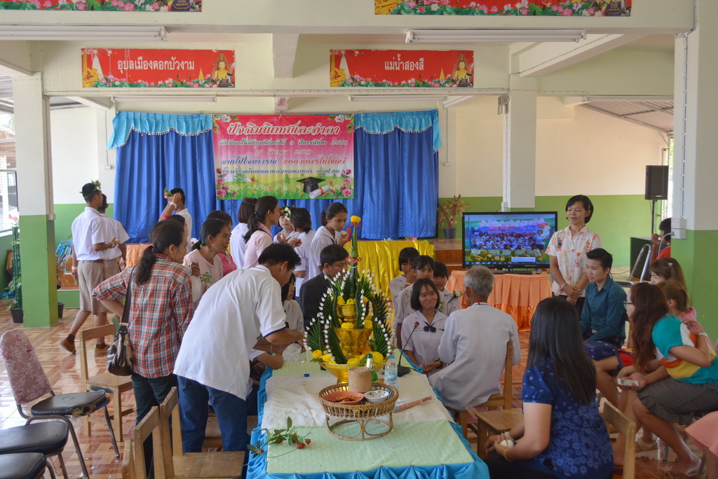 คณะครูและบุคลากรทางการศึกษา นักเรียนและผู้ปกครอง ร่วมพิธีปัจฉิมนิเทศและอำลา นักเรียนชั้นมัธยมศึกษาปีที่ 3 รุ่นที่ 5 ในวันที่ 21 มีนาคม 2559 ณ ห้องประชุมใต้ถุนอาคารเรียนชั้นมัธยมฯ เพื่อเป็นขวัญและกำลังใจให้นักเรียน ในการดำเนินชีวิตในสังคมต่อไป |