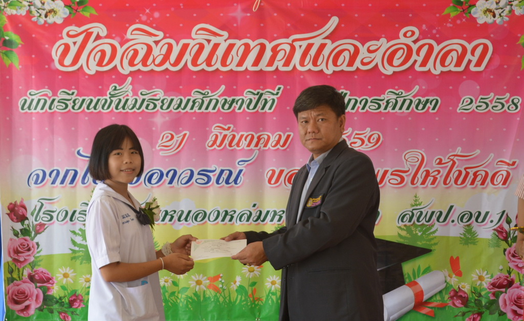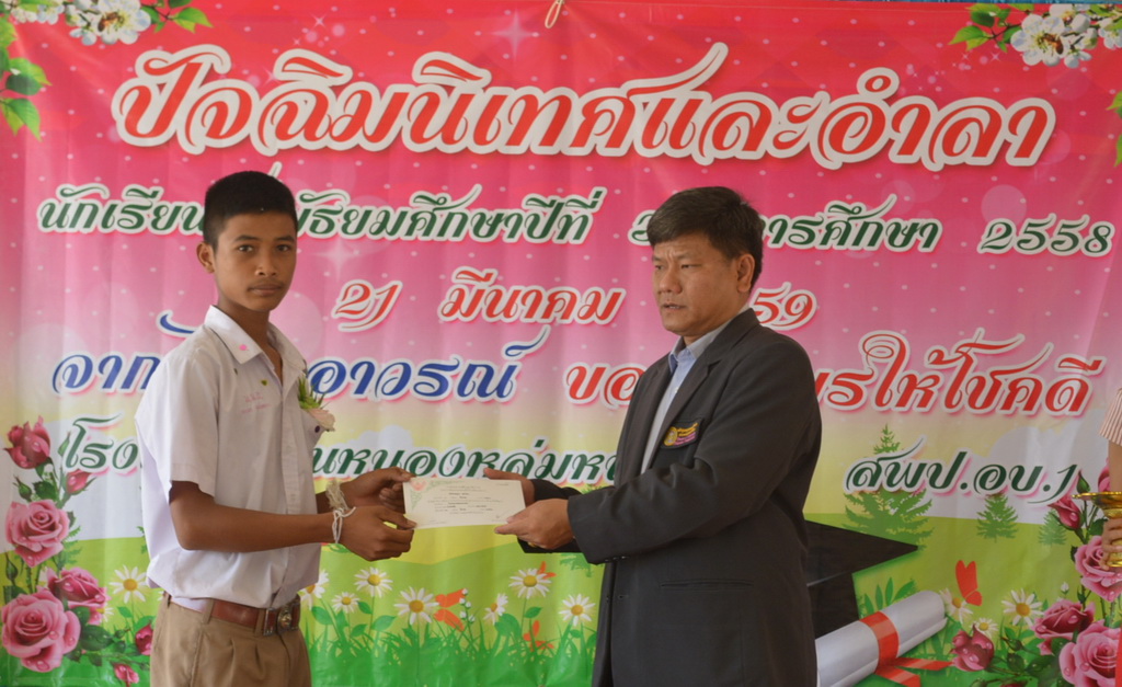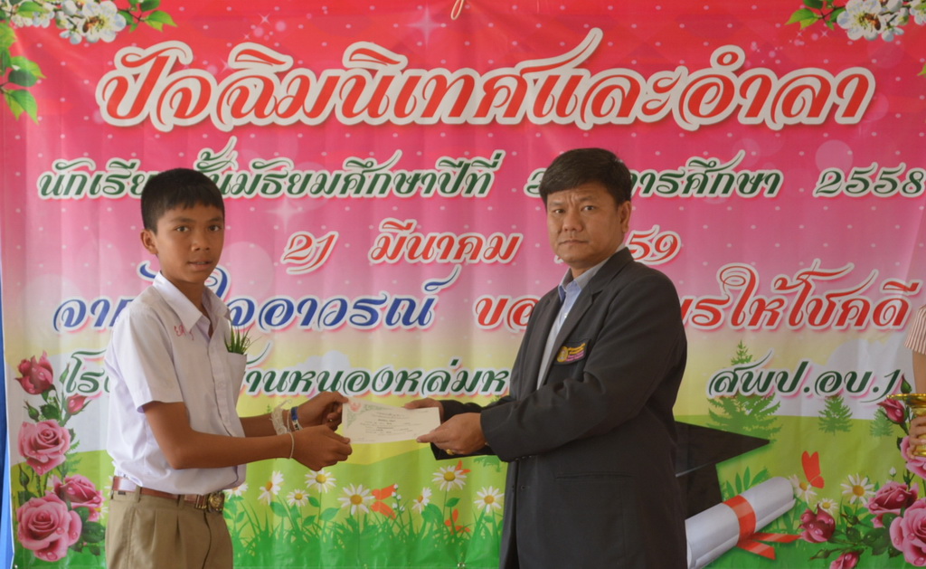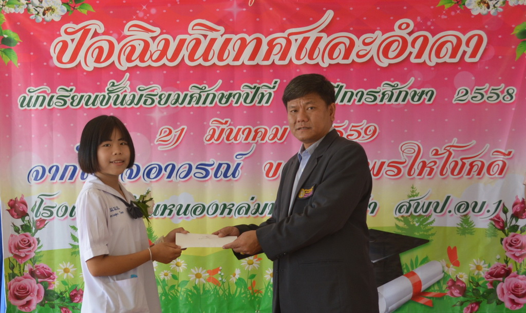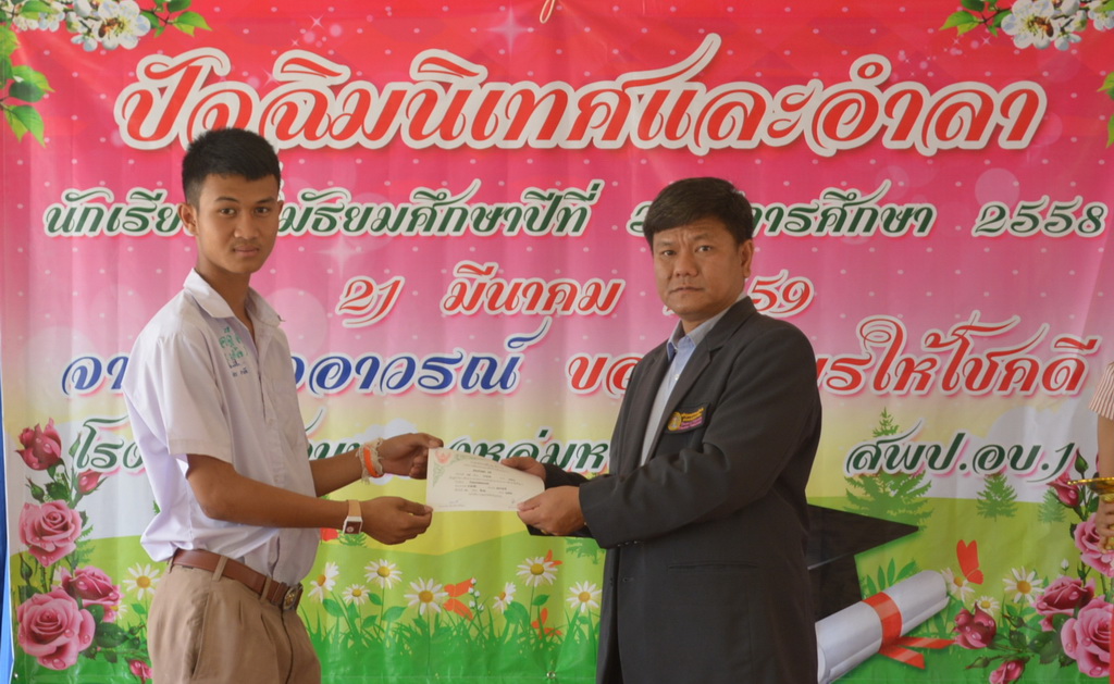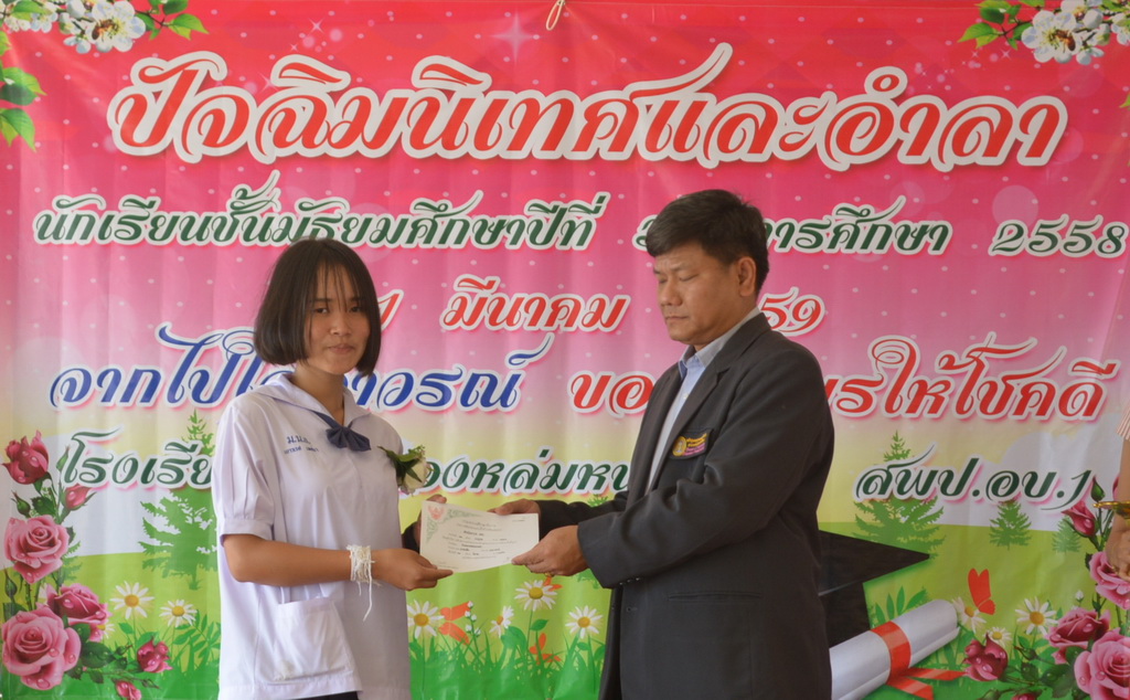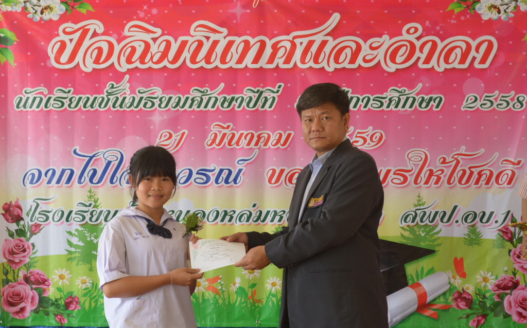 คณะครูและบุคลากรทางการศึกษา นักเรียนและผู้ปกครอง ร่วมพิธีปัจฉิมนิเทศและอำลา นักเรียนชั้นมัธยมศึกษาปีที่ 3 รุ่นที่ 5 ในวันที่ 21 มีนาคม 2559 ณ ห้องประชุมใต้ถุนอาคารเรียนชั้นมัธยมฯ เพื่อเป็นขวัญและกำลังใจให้นักเรียน ในการดำเนินชีวิตในสังคมต่อไป |