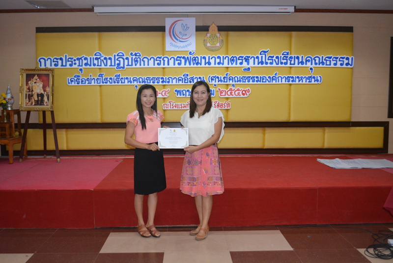 ประชุมเชิงปฏิบัติการมาตรฐานโรงเรียนคุณธรรมเครือข่ายภาคอีสาน ระหว่างวันที่ 3-4 พฤษภาคม 2559 ณ โรงแรมกิจตรงวิลล์ รีสอร์ท จังหวัดอุบลราชธานี