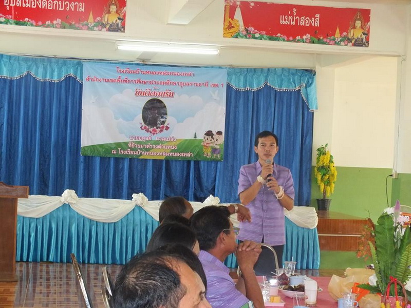 คณะครูและบุคลากร โรงเรียนบ้านหนองหล่มหนองเหล่า ยินดีต้อนรับ คุณครูอดุลย์ นวลเปล่ง หรือครูนัด ย้ายจากโรงเรียนบ้านโนนสูง สพป.ศรีสะเกษ เขต 4 มาปฏิบัติหน้าที่โรงเรียนบ้านหนองหล่มหนองเหล่า สพป.อุบลราชธานี เขต 1 เมื่อวันที่ 26 สิงหาคม 2558. |