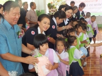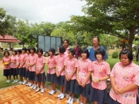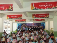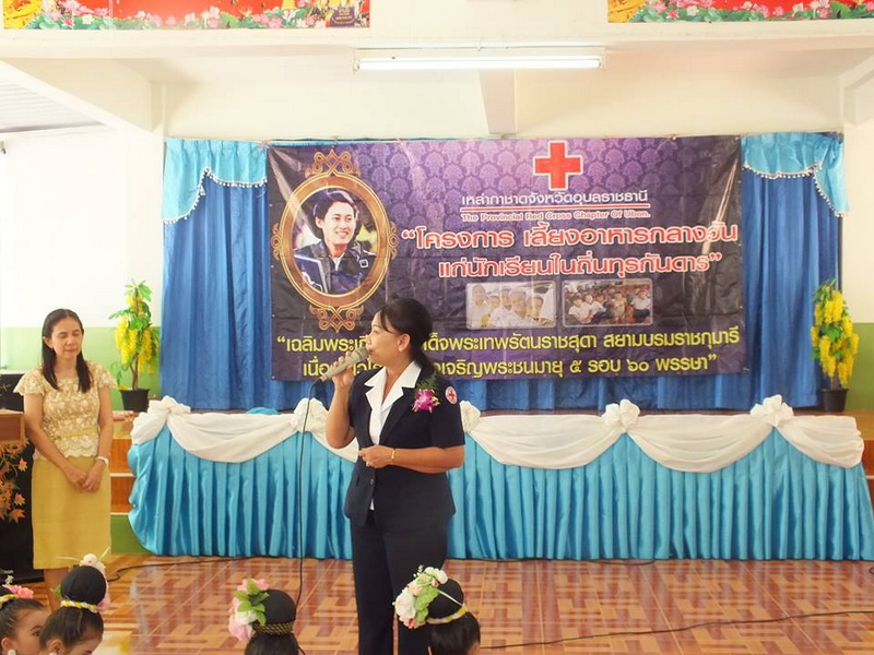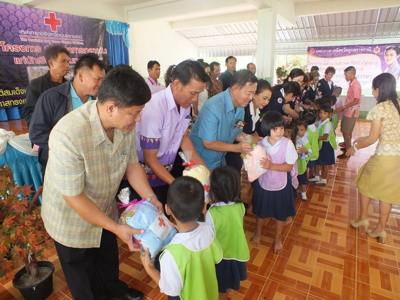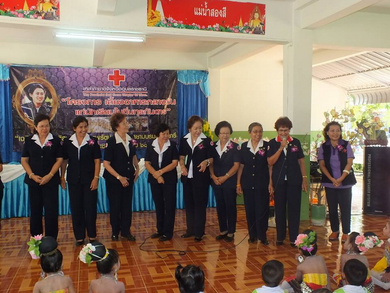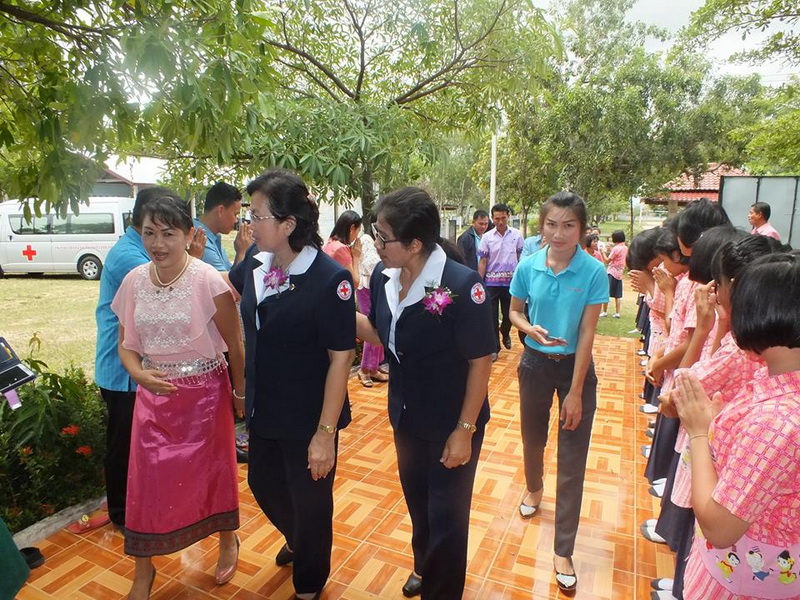 คณะครูและนักเรียนโรงเรียนบ้านหนองหล่มหนองเหล่า ให้การต้อนรับเหล่ากาชาดจังหวัดอุบลราชธานี ที่ได้มอบโครงการเลี้ยงอาหารกลางวัน และสิ่งของแก่เด็กนักเรียน เมื่อวันที่ 28 สิงหาคม 2558. |